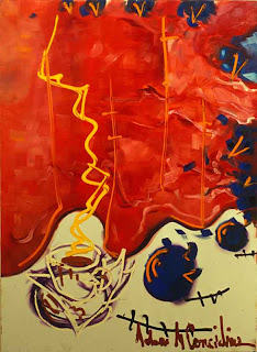 When I was working on this sextet things were not going my way. Just before this painting I was selling my work on a regular bases. I was also spending money like there was no tomorrow, thinking that this sales wave would never end.