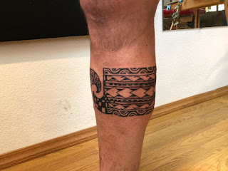 Another client from the past came back for more. These days most of who I work with are all past clients. I would say that new clients are 25% of my business. This guy loved my first tattoo and just keeps coming back to me. It is always a good feeling when your clients just keep coming back. We first did the big island in honor of his Iron Man run, and now we banded his leg with simple masculine Polynesian tribal.