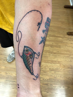 We shall see what happens, the last 5 that asked me for an apprenticeship have never come back. Regardless I love this tattoo. An American Traditional fishing lure.