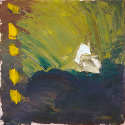 I went home that day and stared at my paintings I was working on at the time.  I was using acrylic paint then, and I was almost out.  I did have a box of old oil paints that my grandmother, Virginia, gave me years before, but no solvent and no brushes.  I did have a few palette knives I could work with.