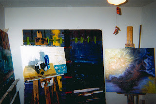 The downfall of this studio was the parties, or as I liked to call them the art openings.  We threw gallery like openings with our paintings in the hallways of the apartment building.  we actually sold some work doing this, and well it was fun.  I had screwed large lug bolts into the apartment hallway walls and painted whit over them so they were not very noticeable, but easy to just hang a bunch of oil paintings for a weekend art show.  The neighbors didn't care, they thought it as fun.