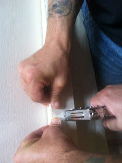 Next remove the first four center staples used to hold the canvas in place, being careful so as not to damage the canvas.