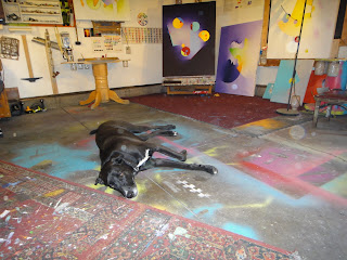 I thought these were pretty cool pictures of my dog Caravaggio in the studio.  he spends as much time in the studio as I do.  We shot a video for my kickstarter project and he was tired and lazy afterward.
