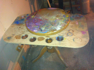 A little sanding, a splash of paint, and its a perfect painting table. I used it for a time, and then I passed it on to my buddy Philip while we shared a studio.  We both liked working on it.
